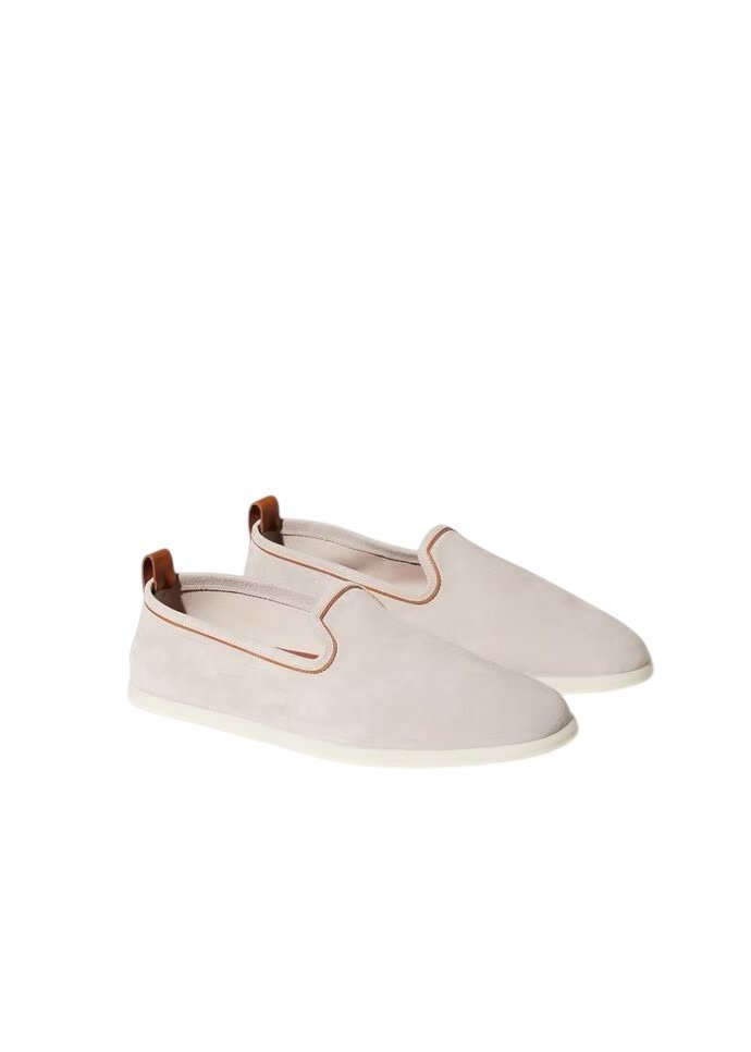 Inspired by classic slipper loafers, this Loro Piana style combines the luxury of artisanal craftsmanship with the versatility of iconic footwear. Loro Piana created these lightweight, flexible suede loafers by selecting the most prized part of the hide and crafting it to achieve the ideal softness and thickness. Thanks to natural-colored leather collapsible heels and slightly elongated toes, they evoke the iconic Loro Piana Summer Walk style.