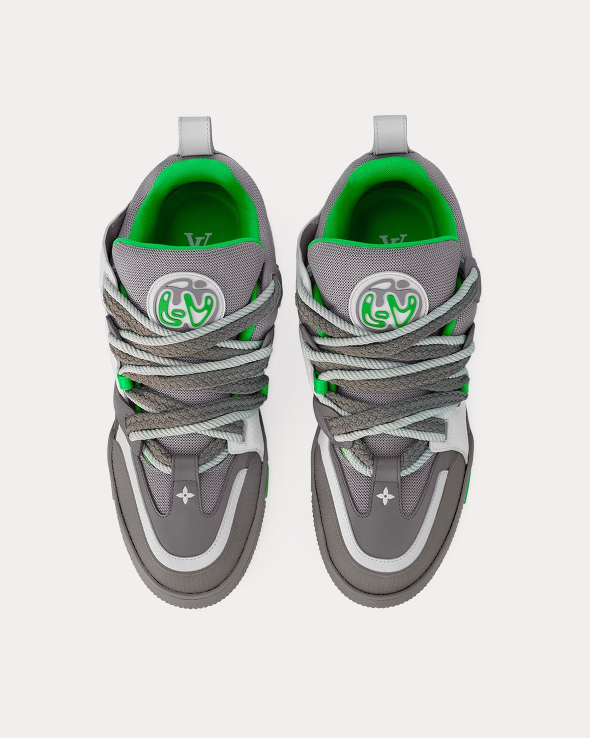 This exclusive edition of the LV Skate sneaker combines grained calf leather with technical mesh. On the side, the interlaced LV motif was inspired by Colm Dillane of KidSuper, who co-designed a part of the Louis Vuitton Fall-Winter 2023 show. Referencing skate shoes, this design is characterized by its padded collar and tongue with bicolor double laces and outsole.